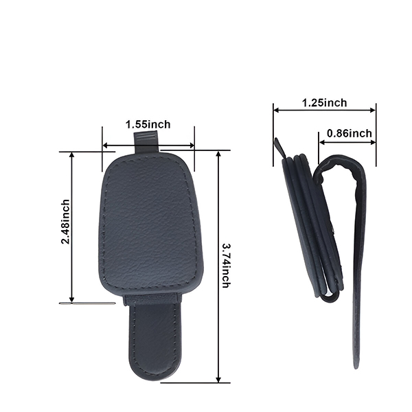 A puha bőrbe burkolt tartó megakadályozza, hogy a napszemüvegén és a szemüvegén karcolások vagy foltok keletkezzenek, így mindkettő érintetlen állapotban marad. Egyszerűen csíptesse a fémkeretet a napellenzőre, majd a tárolás befejezéséhez egyik kezével válassza szét a mágnest, és helyezze a szemüveget a csíptetőbe.