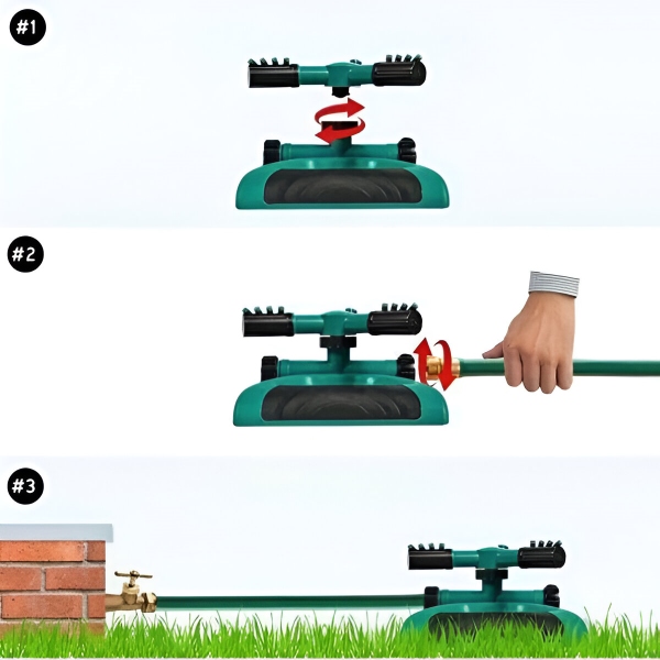 A kiváló minőségű ABS műanyagból készült, szivárgásmentes kialakítású ROTOSPRITZ stabil teljesítményt és hosszú élettartamot biztosít. A háromkarú forgó fúvóka különböző szórásszögekhez állítható, így kielégíti a különböző öntözési igényeket, és sokoldalúságot biztosít a kertgondozási rutinban.