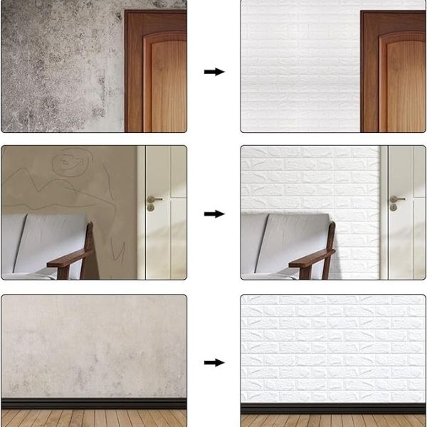 Legyen kreatív a dekorációjával, ha a BRICKSBY paneleket egyedi formákra és mintákra vágja. Egyszerűsítse a telepítési folyamatot öntapadós szerepükkel. Csak igazítsa a kívánt méretre a formát, húzza le a védőfóliát, és könnyen alakítsa át terét egy gyönyörűen felújított területté. Tökéletes akcentusfalakhoz, TV-háttérhez, nappalikhoz, hálószobákhoz és még sok máshoz!