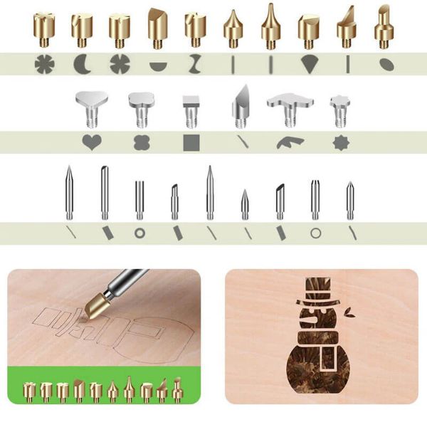 Ezzel a különböző forrasztó és faégető eszközöket tartalmazó készlettel szabadon alkothat. Tökéletes választás olyan anyagok megmunkálására, mint a fa, a bőr, a viasz vagy a parafa. A forrasztópákát más, nagy pontosságot igénylő forrasztási munkákhoz is használhatja.