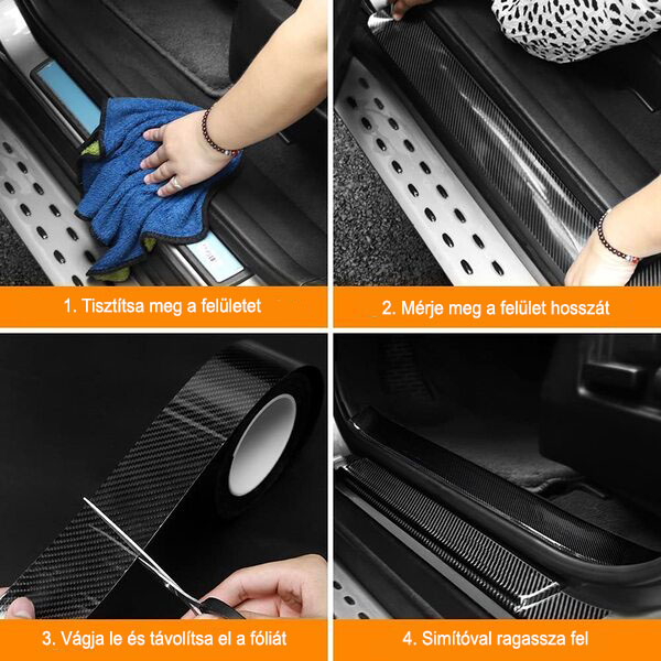 🔹 Külső védelem – alkalmazza ajtókon, tükrökön és csomagtér szélén, hogy megakadályozza a kulcsok, gyűrűk vagy véletlen ütések okozta karcolásokat.